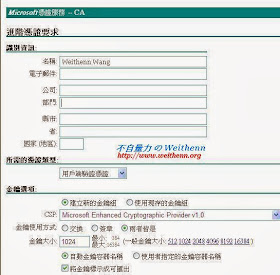 3-4. 點選【向這個 CA 建立並提交一個要求。】後填入如下相關資訊。